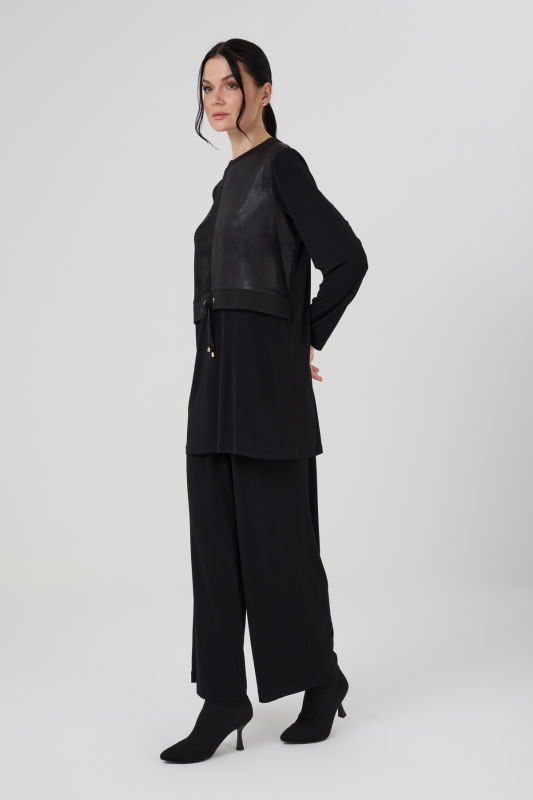 Deri Detaili Örme Jakarlı Takım SİYAH