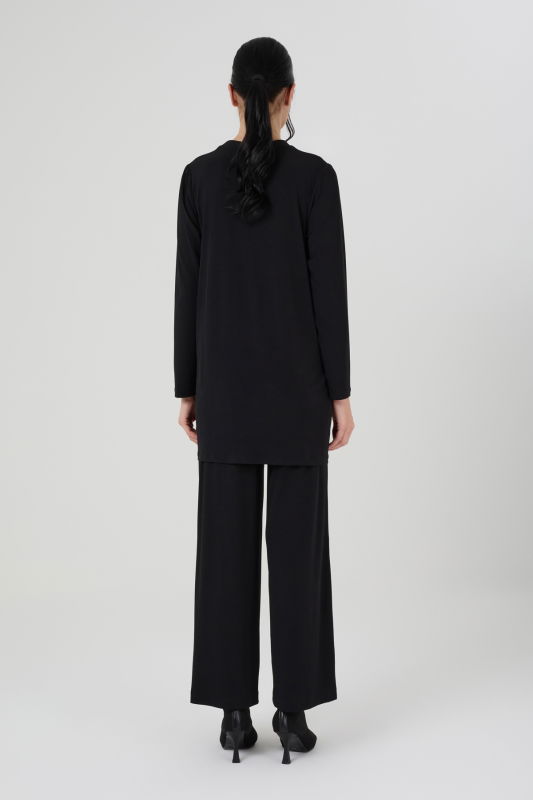 Jakar Detaili Fermuarlı Örme Tunik SİYAH
