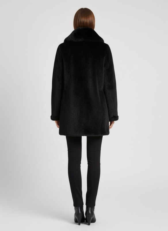 Kurklu Düğmeli Kaban SİYAH