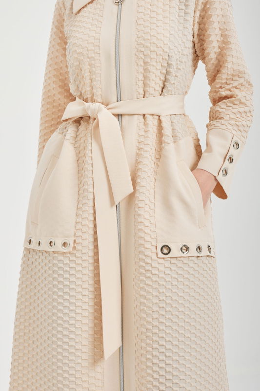 Keten Cep Detaili Feramurlı Kap BEJ