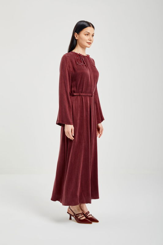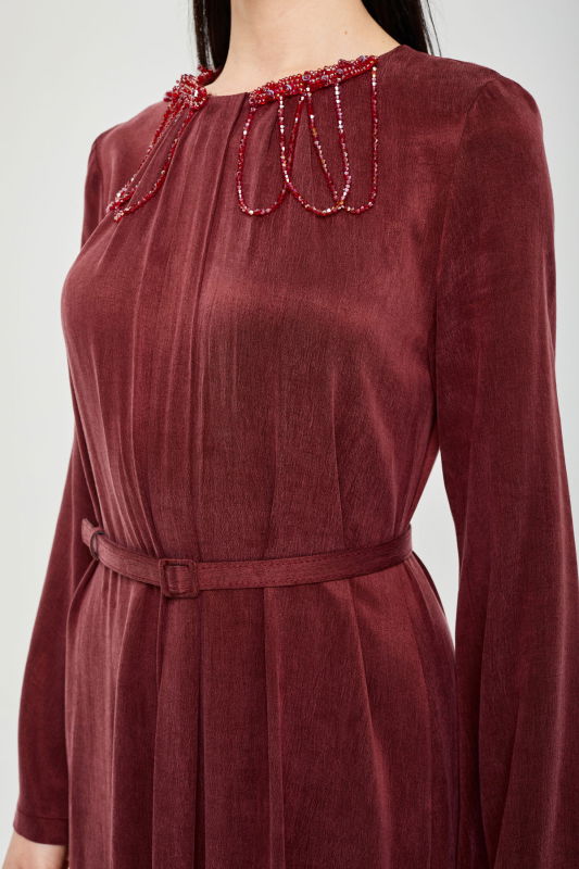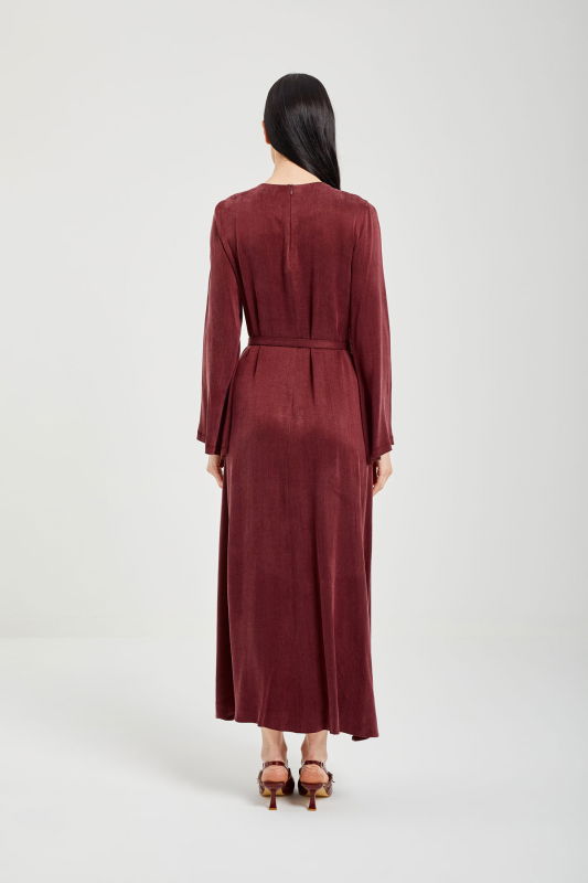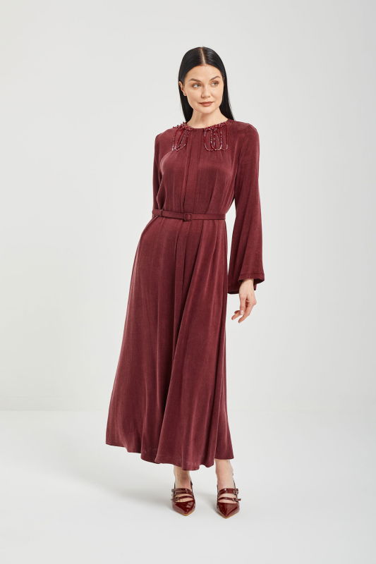 Jakar Pileli Yaka Elbise BORDO