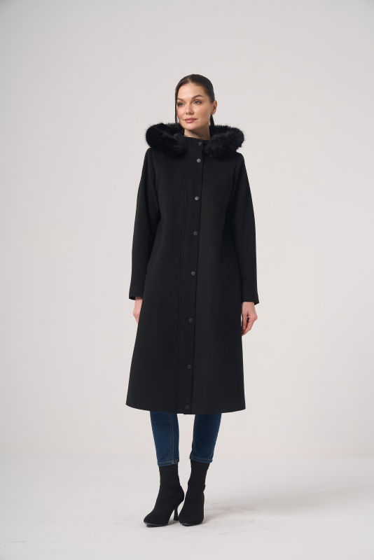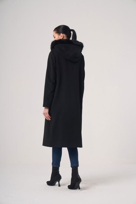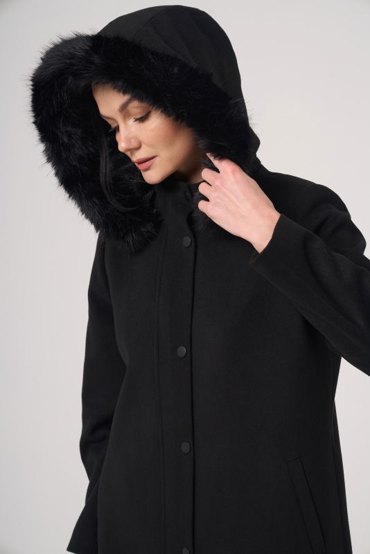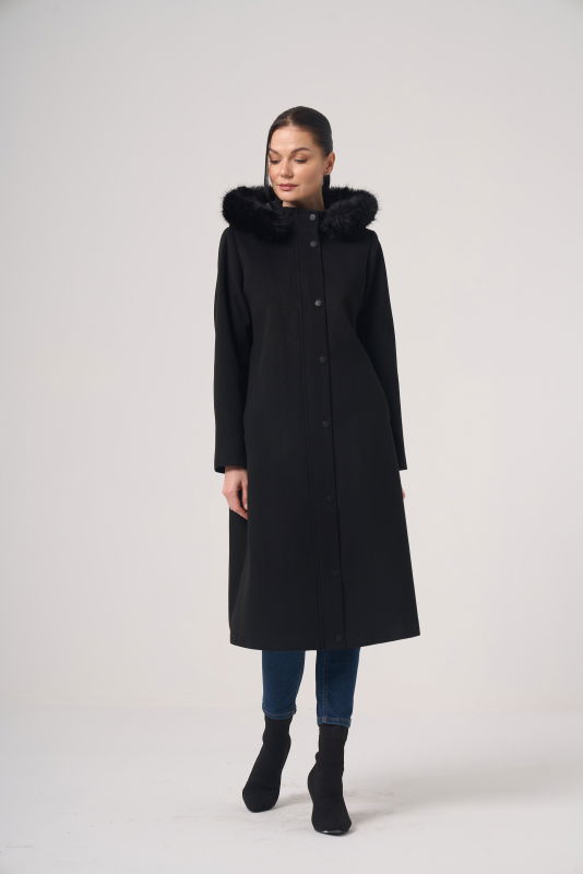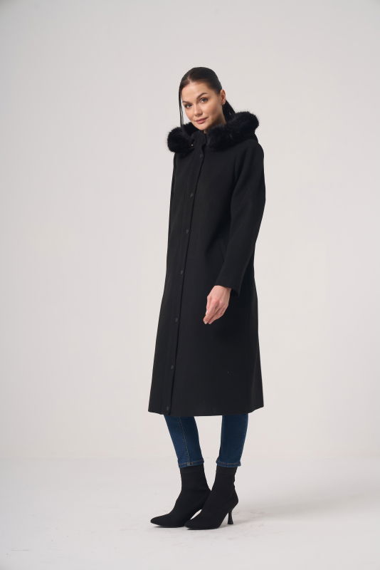 Fermuarlı Kapşonlu Angora Kaban SİYAH