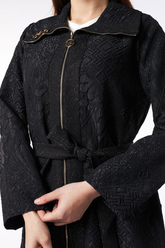 Örme Deri Detaili Fermuarlı Kap SİYAH