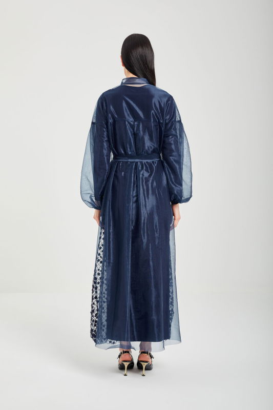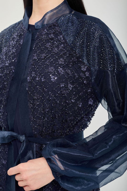 Taşli Çiçekli Şik Abaya LACİVERT